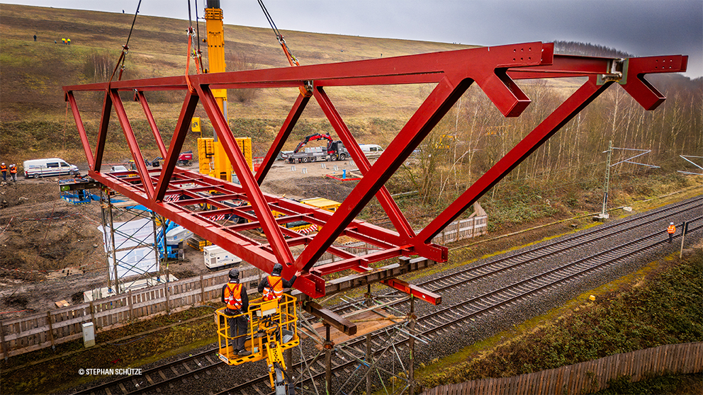 Die Brücke mit einer Länge von ca. 160 m wird in mehreren Abschnitten hergestellt. Zur Sicherung des Belags dienen Innengewindebuchsen ID 18,3x30. Das Aufschweißen dieser Buchsen wurde untervergeben und von uns ausgeführt.