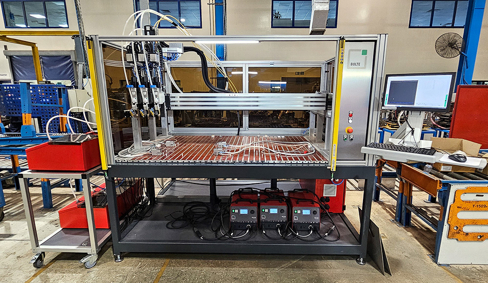- drei Automatik-Bolzenschweißköpfe KHA-200F mit integriertem Wegmesssystem