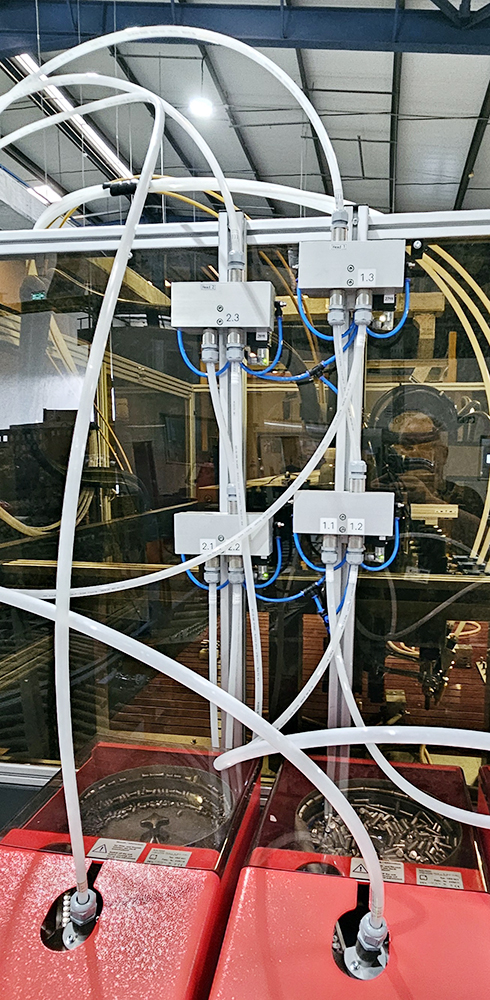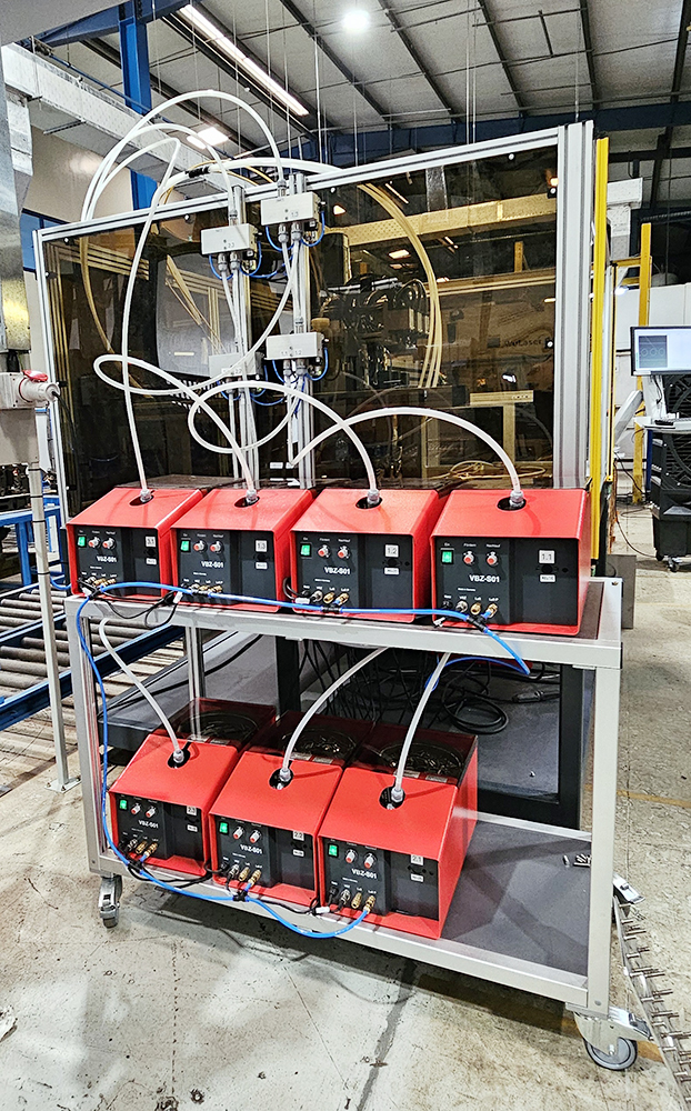 - Flüssigkeitssprühvorrichtung an jedem Schweißkopf