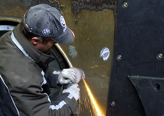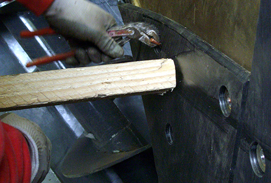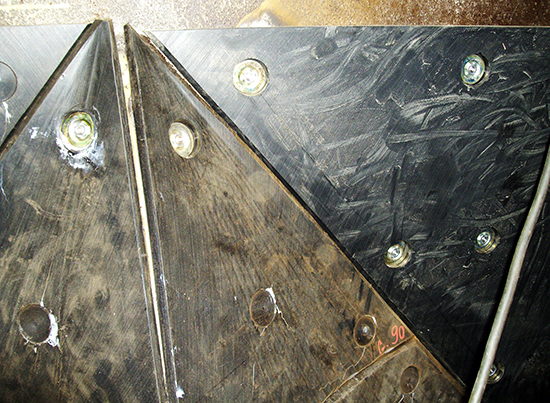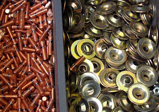 Schweißen der Abbrech-Gewindebolzen durch Löcher in den Korrosionsschutzplatten