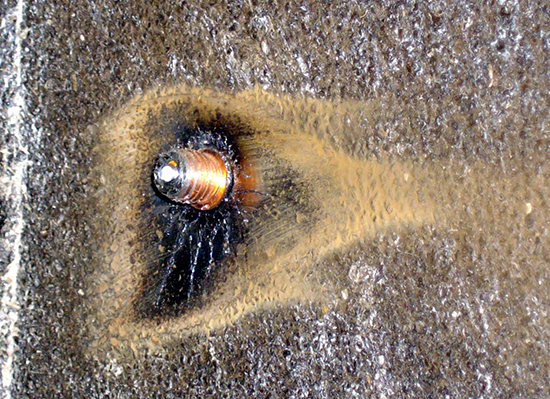 Aufgeschweißter Abbrech-Gewindebolzen nach dem Abbrechen des Bolzenschafts