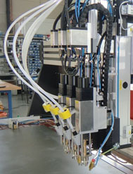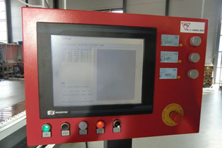 - Bedienpanel mit Touch Screen-PC, Bedienung und dxf-Datenimport durch Software i3stud, Bedien- und Anzeigeelemente der Bolzenschweißgeräte integriert