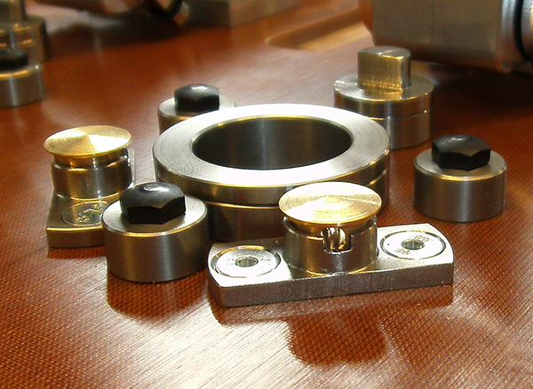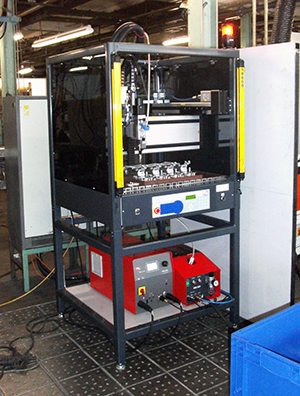 Schweißraum von CNC-Bolzenschweißanlage F400 nach dem Schweißen von Grobgewindebolzen S5x9