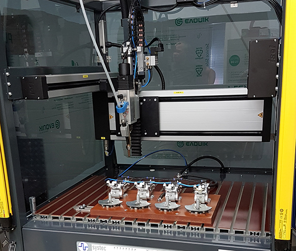 Schweißvorrichtung mit vier Inseln mit Massekontakt von unten