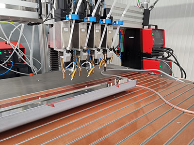 - Flüssigkeitssprühvorrichtung an jedem Schweißkopf