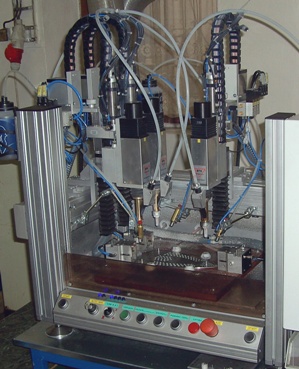 - drei Automatikbolzenschweißköpfen KHA-200F (jeweils mit Flüssigkeitssprühvorrichtung)