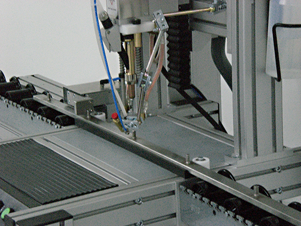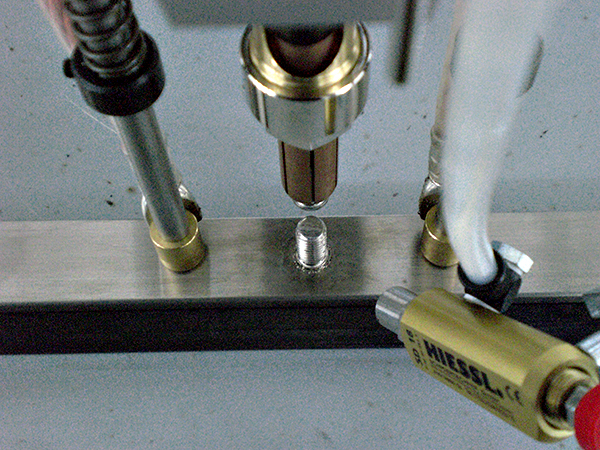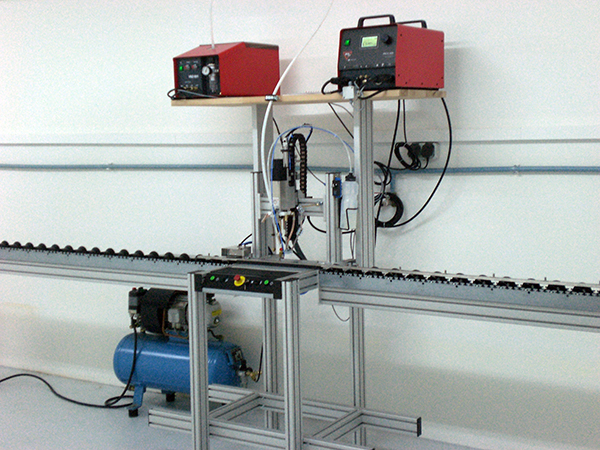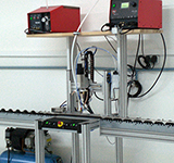 Tisch-Bolzenschweißanlage MAS-02 mit Rollensystem für das Zuführen langer Werkstücke