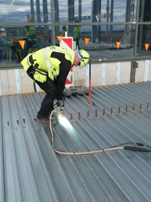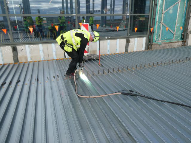Through deck stud welding of shear connectors dia. 19 mm for airport extension in Iceland