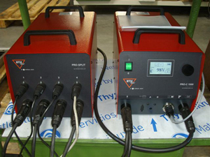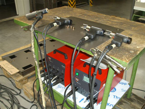 Stud welding unit PRO-C 1500 with adapter box PRO-SPLIT and four stud welding guns PKM-1B